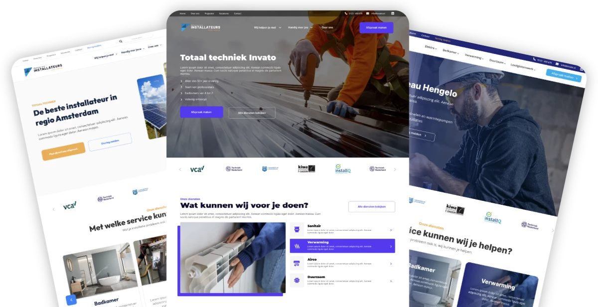 Je krijgt een compleet nieuwe website, boordevol handige functies. Voorzien van een modern design, speciaal gemaakt voor installateurs zoals jij.